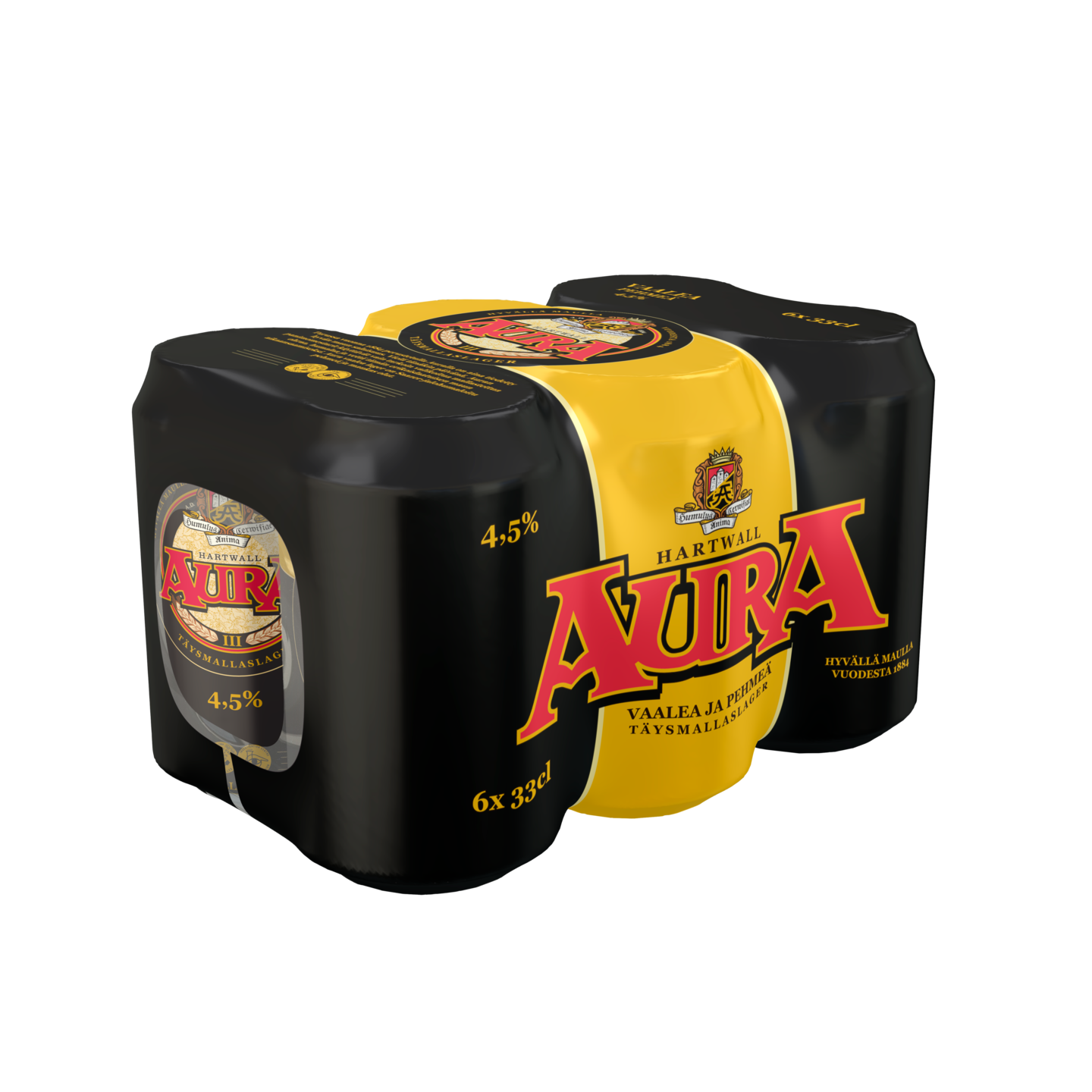 Suomalainen olut oli laadukasta ja arvostettua jo 1500-luvulla kun Ruotsin kuninkaan hovihankkijat tilasivat sitä Turun linnan isänniltä. Auran panimo aloitti toimintansa Aurajoen rannalla vuonna 1884. Aura valmistetaan edelleen panimon alkuperäistä reseptiä kunnioittaen. Hartwall Aura on tasapainoinen, vaalea ja raikas, aromaattisella Saazer-humalalla viimeistelty lager-olut. Sopii laajasti erilaisten ruokien kanssa sekä ihan seurustelujuomana. Kokeile esimerkiksi grillatun broilerin tai lihavartaiden kanssa. Tarjoillaan hyvin viilennettynä 6-8 asteisena