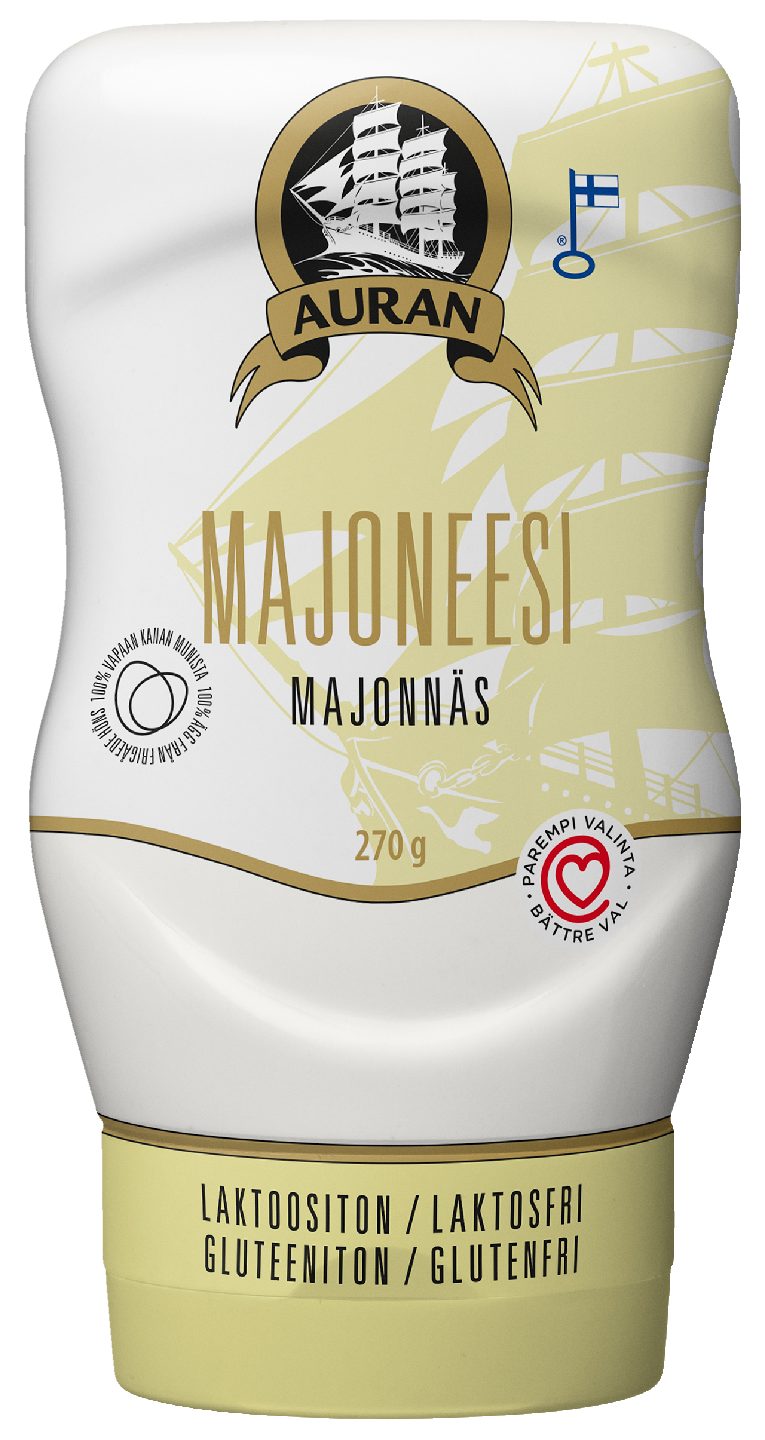 Auran majoneesit valmistetaan perinteitä kunnioittaen Suomen Turussa, ja ne ovat saavuttaneet kestosuosikin paikan suomalaisessa ruokapöydässä. Monipuolinen tuoteperhe on perinteitä arvostavan kotikokin luottoystävä, joka elää tämän päivän hengessä tarjoillen makuelämyksiä myös maailmalta omalla herkullisella twistillään.