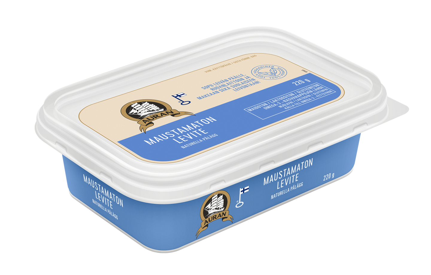 VegaaninenAuran Suomessa valmistettu Maustamaton levite on jokaisen herkuttelijan maidoton, gluteeniton ja vegaaninen valinta. Monikäyttöinen levite on omiaan leivän päälle, makeaan ja suolaiseen leivontaan tai ruoanlaittoon; kokeile levitettä vaikkapa juustokakuissa tai kastikkeissa! Rasian ja kannen lajittelet helposti muovinkeräykseen, kalvon kartonkikeräykseen.