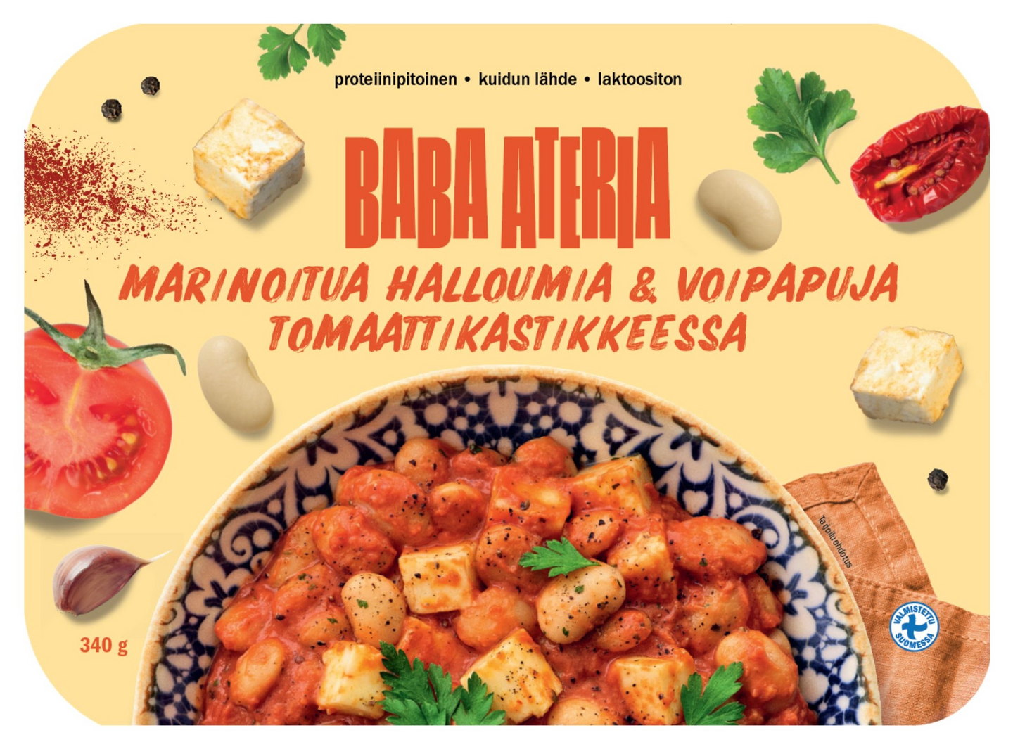 Mehevä marinoitu halloumi kohtaa maukkaat voipavut täyteläisessä tomaattikastikkeessa, jonka makua syventää aurinkokuivattu tomaatti. Gluteeniton valmisateria, joka on herkullinen ja helppo valinta arkeen!