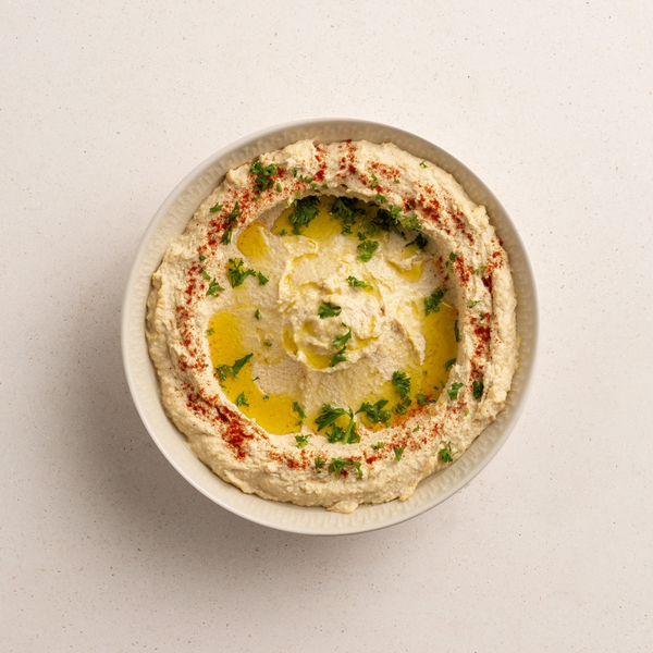 Kikherne 57% (Kanada), vesi, SEESAMSIEMENtahna 10%, rapsiöljy, sitruunamehu, merisuola, sokeri, juustokumina, mustapippuri, säilöntäaineet (sitruunahappo, kaliumsorbaatti).