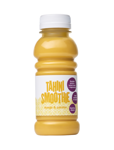 VegaaninenProteiini- ja kuitupitoisella tahinilla rikastettu hedelmäsmoothie ilman lisättyä sokeria. Täydellinen juotava välipala! Tahini on hienoksi murskattua seesaminsiementahnaa, joka sisältää runsaasti mm. magnesiumia ja rautaa.