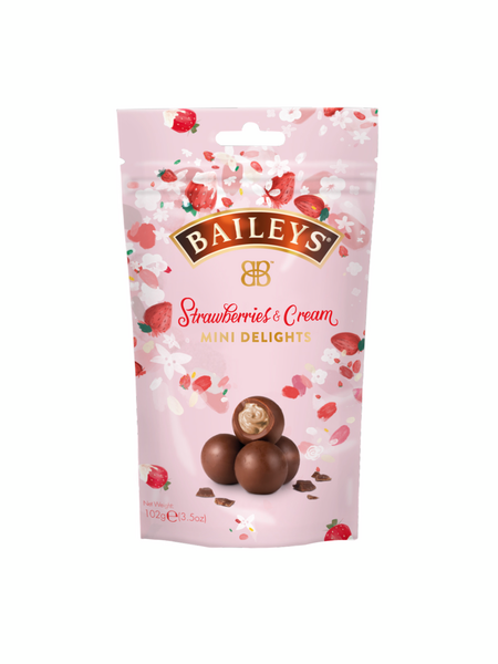 GluteenitonBaileys Strawberries&Cream makuiset suklaatäytekonvehdit kauniissa uudelleensuljettavassa pussissa