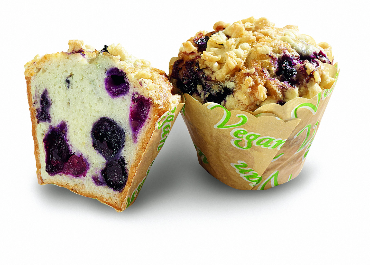 VegaaninenVegaaninen crumbella koristeltu mustikkamuffinssi, kypsä pakaste.