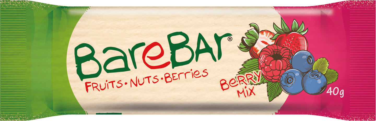 Taateli 51 % (muu kuin eu), MANTELI, rusina, marjat 4 % (eu ja muu kuin eu) (pakkaskuivattu vadelmarouhe, mansikkapala, kuivattu mustikka), sitruunamehujauhe (sitruunamehu, maltodekstriini), omenamehutiiviste, luontainen sitruuna-aromi, sitruunamelissauutejauhe. Saattaa sisältää jäämiä maapähkinöistä, muista pähkinöistä, maidosta ja soijasta. Saattaa sisältää taatelinkivien paloja.