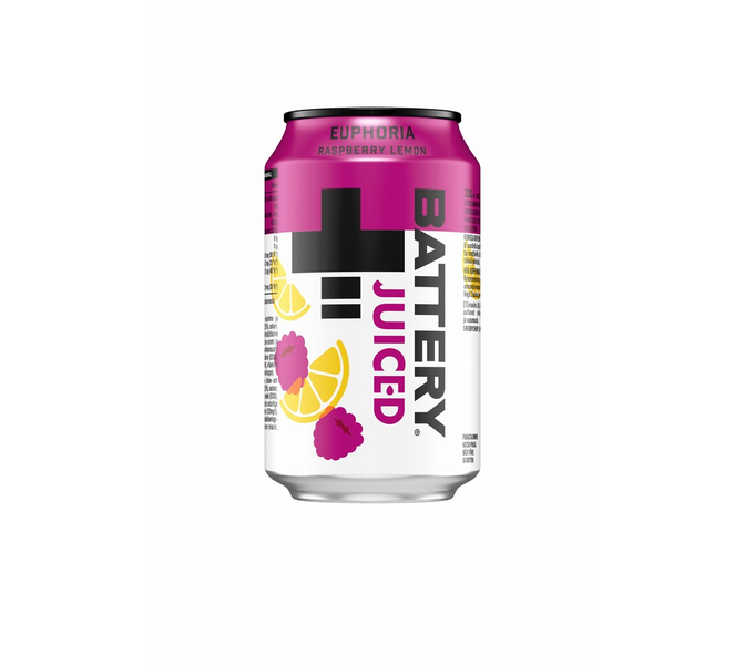 Battery Juiced Euphoria on virkistävä sitruunan ja vadelmanmakuinen energiajuoma, joka sisältää 25 % hedelmämehua, 100 % makua ja juuri sopivasti energiaa.