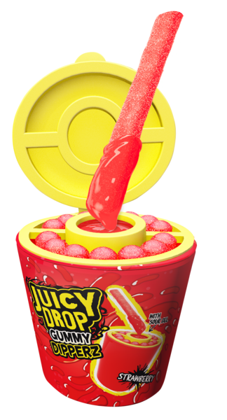 Juicy Drop Gummy Dipperzin avulla voit luoda täydellisen sekoituksen makeaa ja kirpeää. Tuote sisältää vadelman ja mansikan makuisia pehmeitä makeistankoja, joita voi dipata herkullisen täyteläiseen ja kirpeään mansikan tai vadelman makuiseen geeliin. Dippaa niin paljon tai niin vähän kuin haluat!