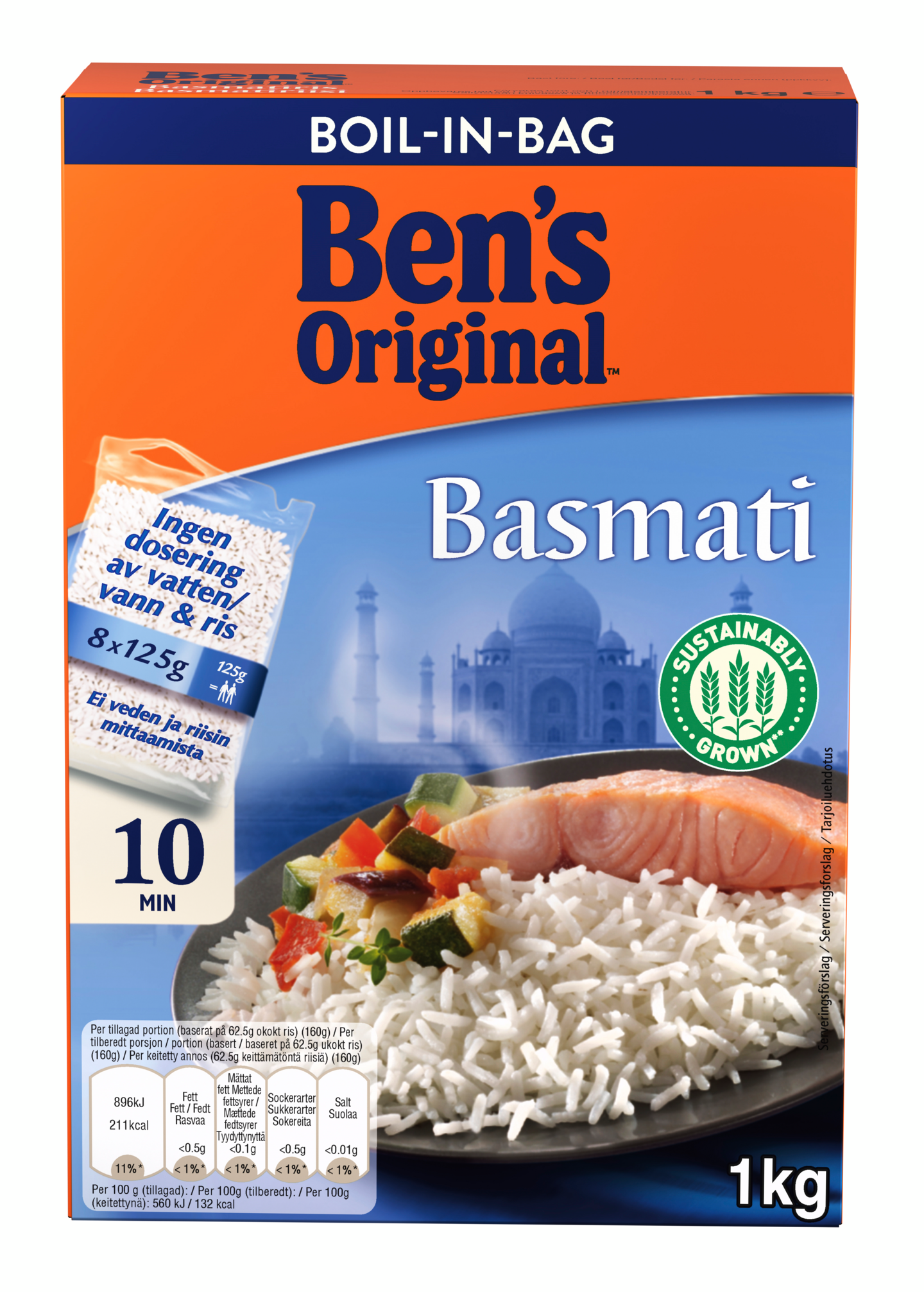 Ben's Original™ Basmatiriisi täyttää kestävän kehityksen vaatimukset. Sitä viljellään Intiassa Himalajan vuoriston juurella ja varastoidaan puoli vuotta, jotta sen luonnollinen aromikas tuoksu ja maku vahvistuvat. Sille tyypillinen pähkinäinen aromi tulee esille keitettäessä. Herkullinen riisi kypsyy vain 10 minuutissa. Keittopussi säästää veden mittaamisen vaivan ja poistaa riisin pohjaan palamisen vaaran.