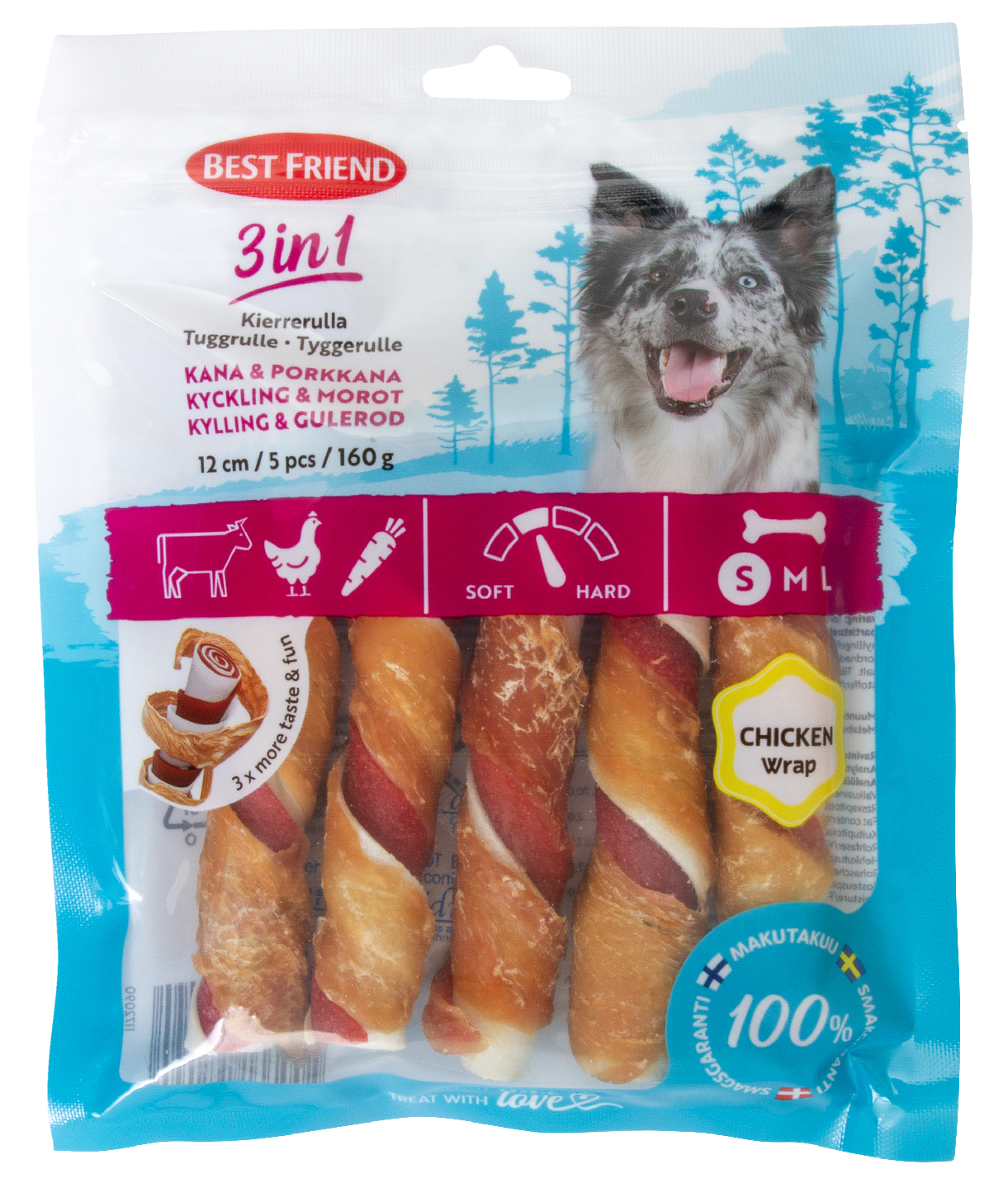 Best Friend 3 in 1 kierrerulla kana-porkkana 12 cm 5 kpl 160 g