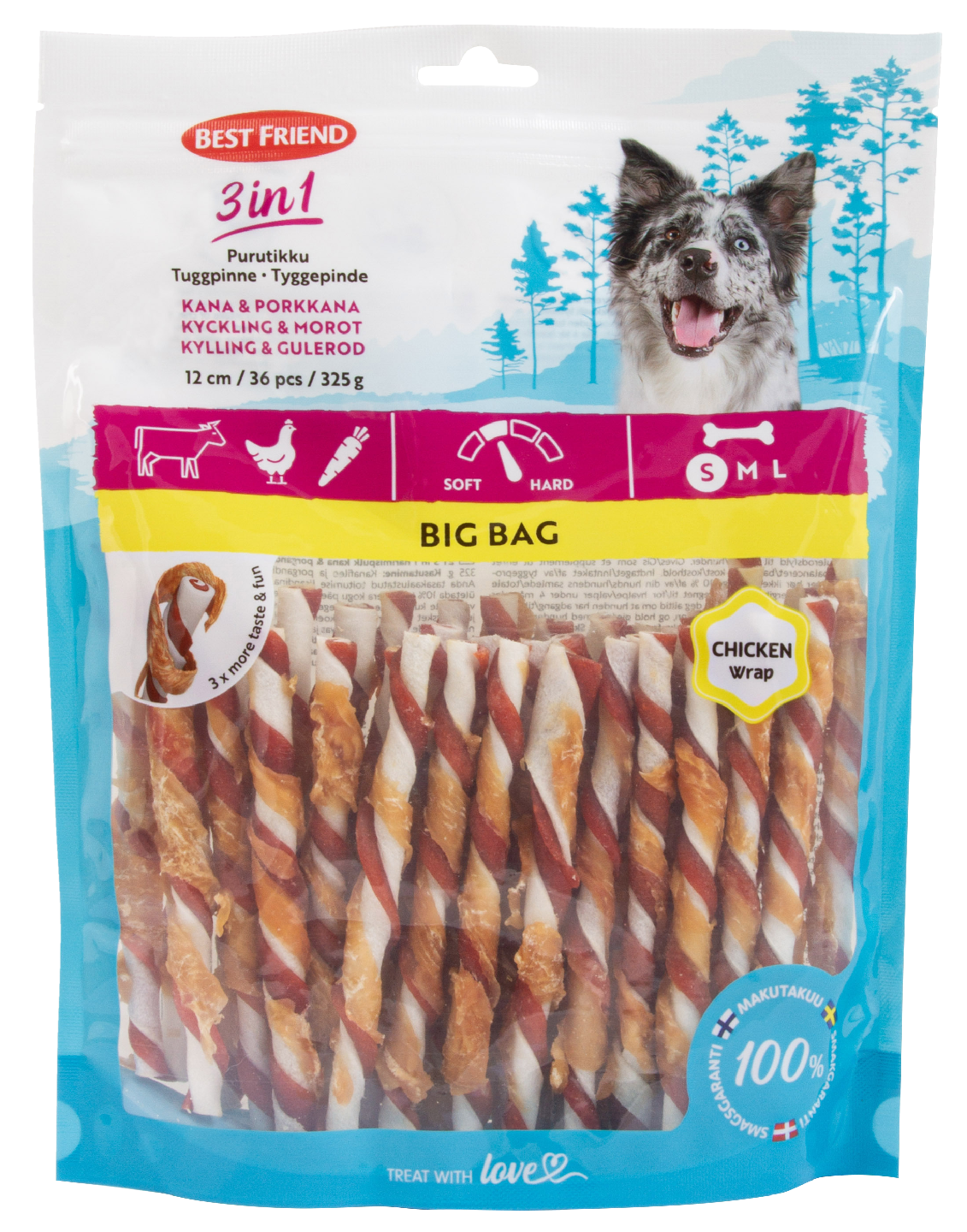 Best Friend 3 in 1 purutikku kana ja porkkana Big Bag 12 cm 36 kpl 325 g