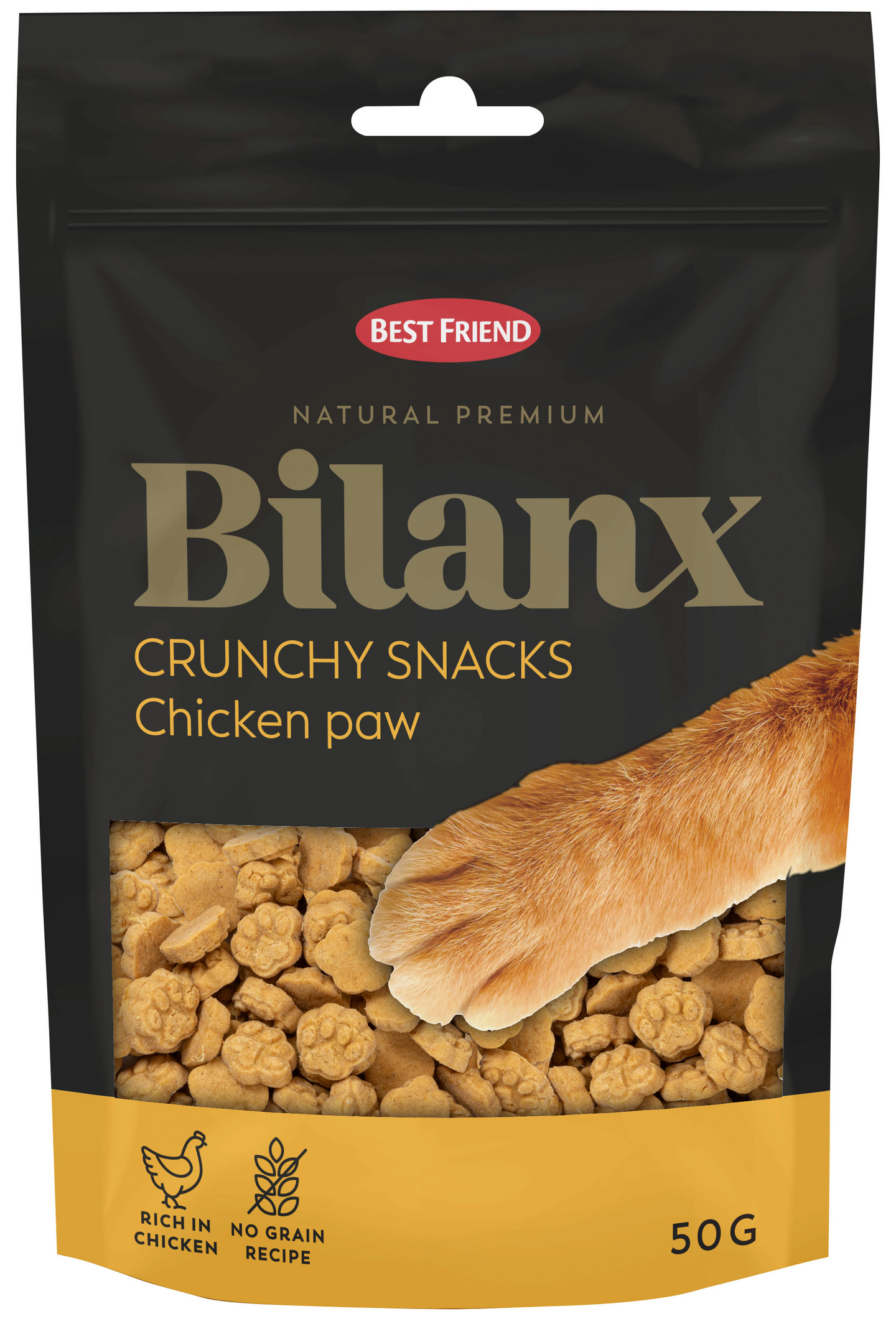 Bilanx Crunchy Snacks kanatassut ovat herkullinen makupalauutuus kaikille aikuisille kissoille! Tämä tassunmuotoinen herkku on rapeaa rouskuteltavaa! Näissä rouheissa kissan herkuissa on runsaasti kananlihaa, siksi ne ovatkin poikkeuksellisen maistuvia! Bilanx Crunchy Snacks kanatassut ovat lihaisia, eikä niihin ole lisätty viljaa tai sokeria, tämän vuoksi ne ovat erinomainen valinta kaikille kissoille ja moniin erilaisiin ruokavalioihin. Bilanx rapeat herkut saavat kissasi kehräämään lisää!