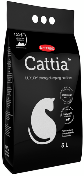 Best Friend Cattia on luonnon materiaalista valmistettua, paakkuuntuvaa ja korkealaatuista kissanhiekkaa. Se on valmistettu valkoisesta luonnon bentoniitista, jossa on erittäin korkea montmorilloniittipitoisuus. Korkealaatuisen materiaalin ja hienojakoisen koostumuksen ansiosta hajun- ja kosteudensitomiskyky on testatusti ylivoimaista perinteiseen bentoniittihiekkaan verrattuna, pitäen laatikon raikkaana ja hajuttomana. Erinomainen paakkuuntuminen tekee hiekasta erittäin riittoisaa ja helppohoitoista käytössä. Hiekan vaihtaminen on miellyttävää, koska se on 99% pölytöntä. Best Friend Cattia hiekkaa kaadetaan noin 7 cm hiekkalaatikon pohjalle. Kiinteät paakut ja jätökset poistetaan päivittäin hiekkalapiolla ja uutta hiekkaa lisätään tarpeen mukaan. Hiekka vaihdetaan ja laatikko puhdistetaan ja desinfioidaan tarpeen mukaisesti tai vähintään muutaman viikon välein. Hiekka säilytetään kuivassa paikassa. Käytetty hiekka hävitetään talousjätteen mukana. Kissanhiekkaa ei saa laittaa viemäriverkostoon.