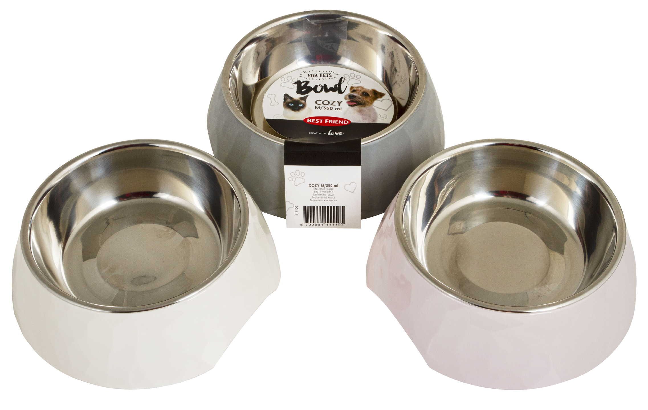 Tästä kupista kelpaa syödä! Tyylikäs ja kestävä Best Friend Cozy kuppi viimeistelee kodin sisustuksen. Konepesun kestävässä melamiinikupissa on irrotettava sisuskuppi ruostumatonta terästä, joten se on helppo puhdistaa. Pohjassa oleva liukueste pitää kupin hyvin paikoillaan. Vaihtuva lajitelma eri värejä ja kauniita pintaviimeistelyjä. Koko M / 350 ml (Ø 17,2 cm) soveltuu pienille ja keskikokoisille koirille.