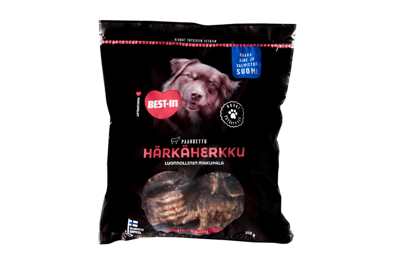 Best-In Härkäherkku on suomalainen makupala, joka on valmistettu 100% suomalaisesta naudasta. Best-In –makupalojen herkullisuus piilee puhtaissa, suomalaisissa raaka-aineissa ja hellävaraisessa kypsennyksessä. Herkut paahdetaan rapeaksi uunissa ja pakataan tämän jälkeen ilmatiiviisin pakkauksiin. Valmistusmenetelmä takaa tuotteen säilyvyyden – eikä säilöntä-, lisä- tai väriaineita tarvita. Toimimme Ruokaviraston valvonnan alla ja tuotteiden sekä toiminnan laadun takeena meillä on laatu- ja ympäristösertifikaatit.