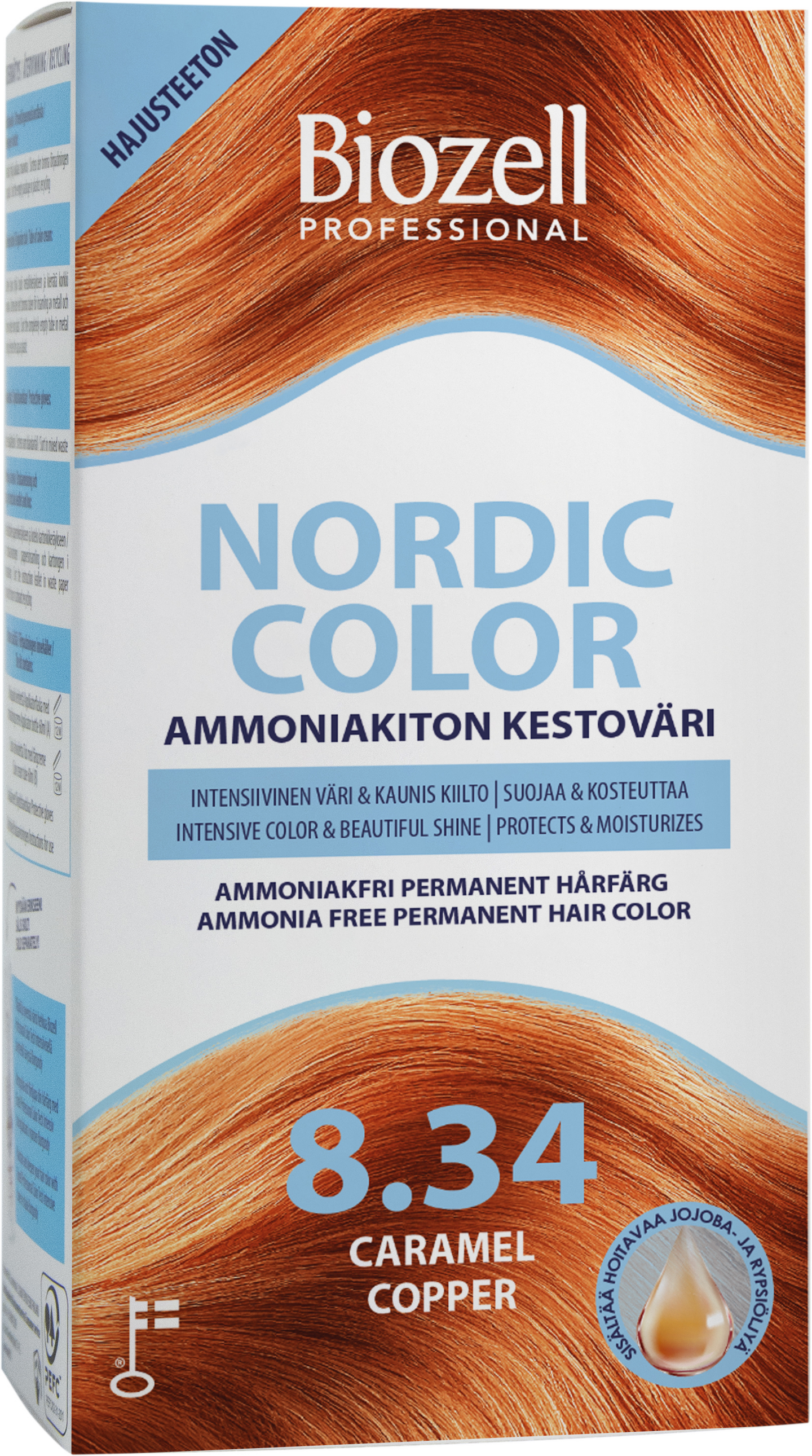 Biozell Professional Nordic Color kestoväri 8.34 2x60ml Caramel Copper ammoniakiton
