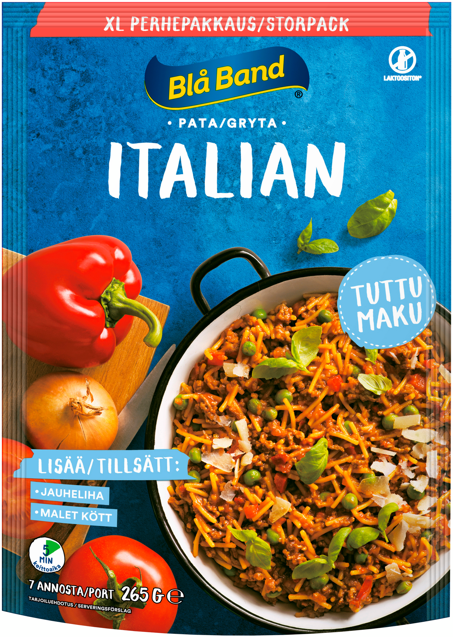 Blå Band laktoositon Italian pata XL Perhepakkaus spagetti-kasvis-mausteseos 265g