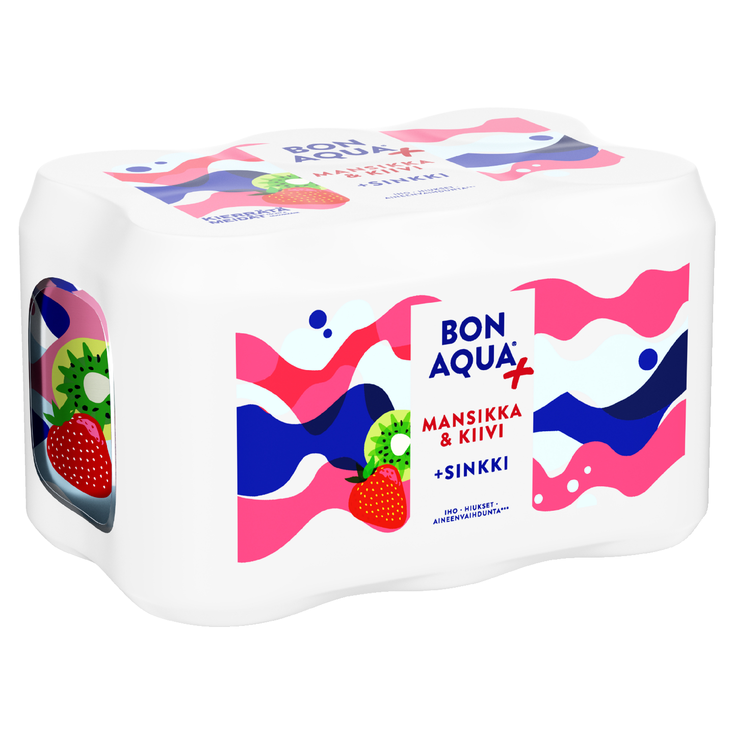 Bonaqua + Mansikka-Kiivi on matalahiilihappoinen, poreilevan virkistävä juoma, jossa maistuu lempeä mansikka ja eksoottisen maukas kiivi. Juoman aromit ovat kaikki luontaisia. Lisäksi juomaan on lisätty päivittäin tarvittavaa sinkkiä tukemaan ihoa, hiuksia ja normaalia aineenvaihduntaa.