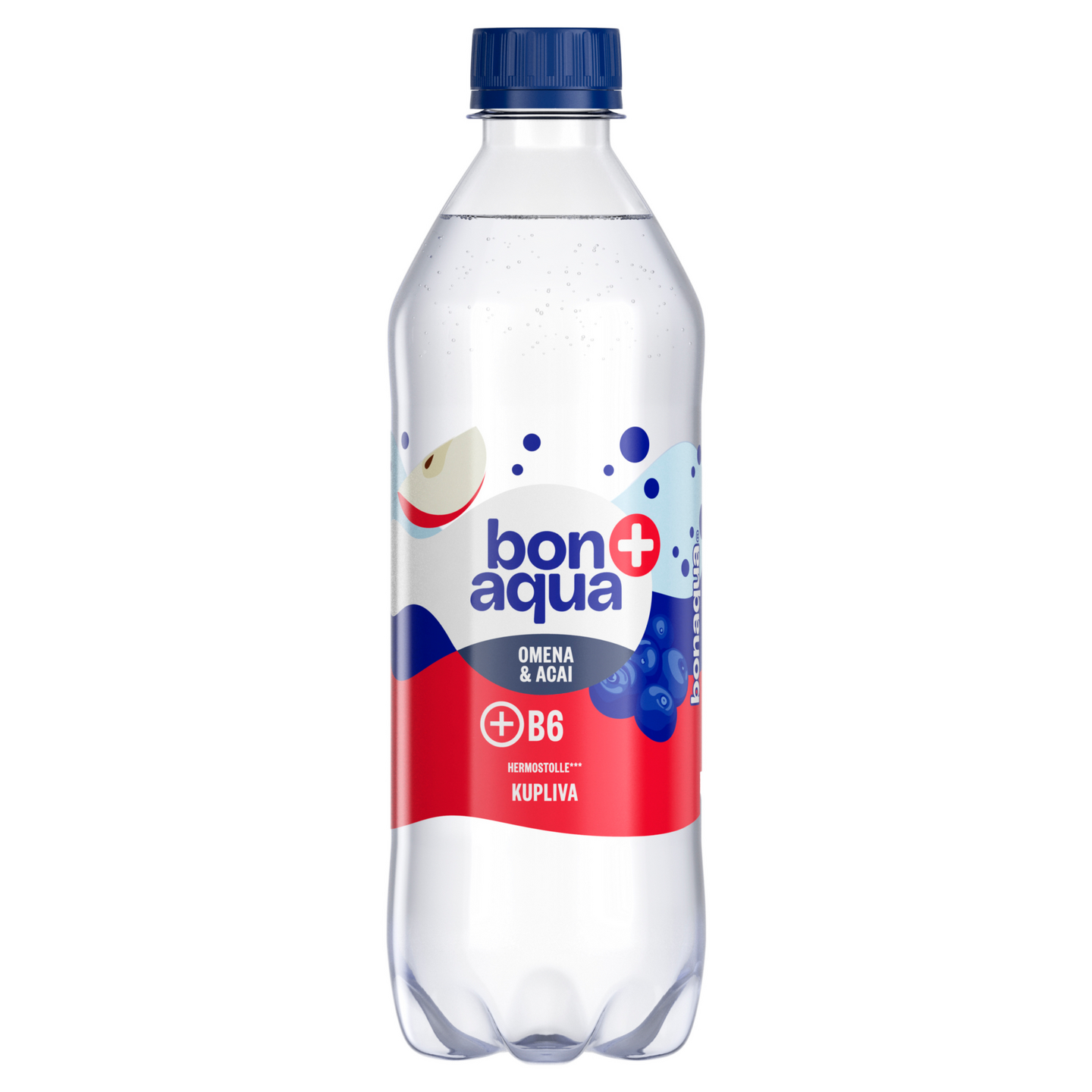 Bonaqua+ Omena & Acai on poreilevan virkistävä juoma, jossa maistuu herkullisen tuttu omena ja eksoottinen acai-marja. Lisäksi juomaan on lisätty B6-vitamiinia, mikä edistää hermoston normaalia toimintaa.