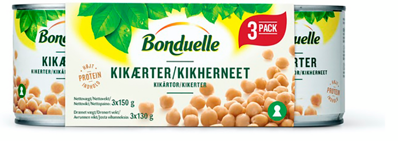 Kätevässä monipakkauksessa saatavat Bonduelle Kikherneet on nyt pakattu ympäristöystävälliseen pahvikääreeseen.