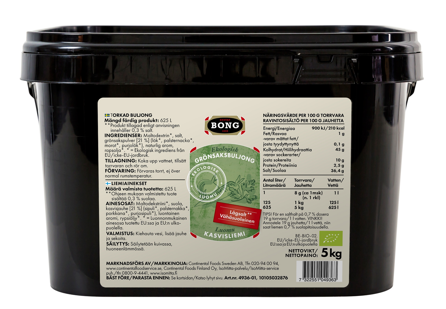 LaktoositonNyt täydennämme BONG-liemivalikoimaamme 5kg Lomu Kasvisliemijauheella, ilman lisättyä hiivauutetta. Liemessä on runsaasti makua parantavia raaka-aineita (21 % kasviksia) ja suolapitoisuus on alhainen, 0,3 %. Resepti on yksinkertainen ja ilman lisäaineita. Ei väriaineita vain luonnolliset ainesosat lisäävät väriä.