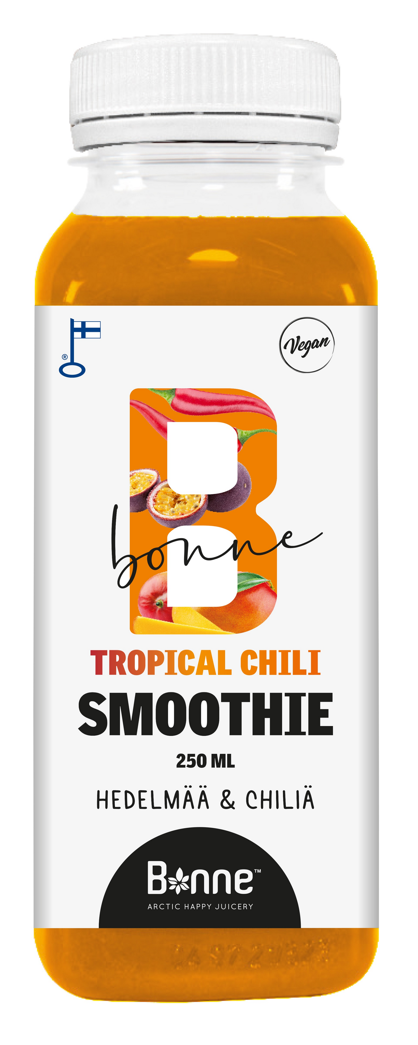 VegaaninenIhanan raikas ja hedelmäinen smoothie jättää kielellesi vivahduksen chiliä. Smoothie saa makunsa ja makeutensa hedelmistä - ilman makeutus- tai säilöntäaineita.