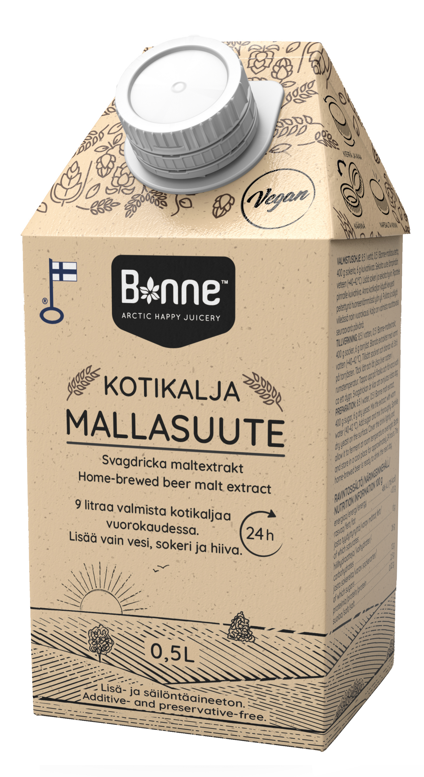 Vegaaninen9 litraa valmista kotikaljaa vuorokaudessa. Lisää vain vesi, sokeri ja hiiva. Lisä- ja säilöntäaineeton.