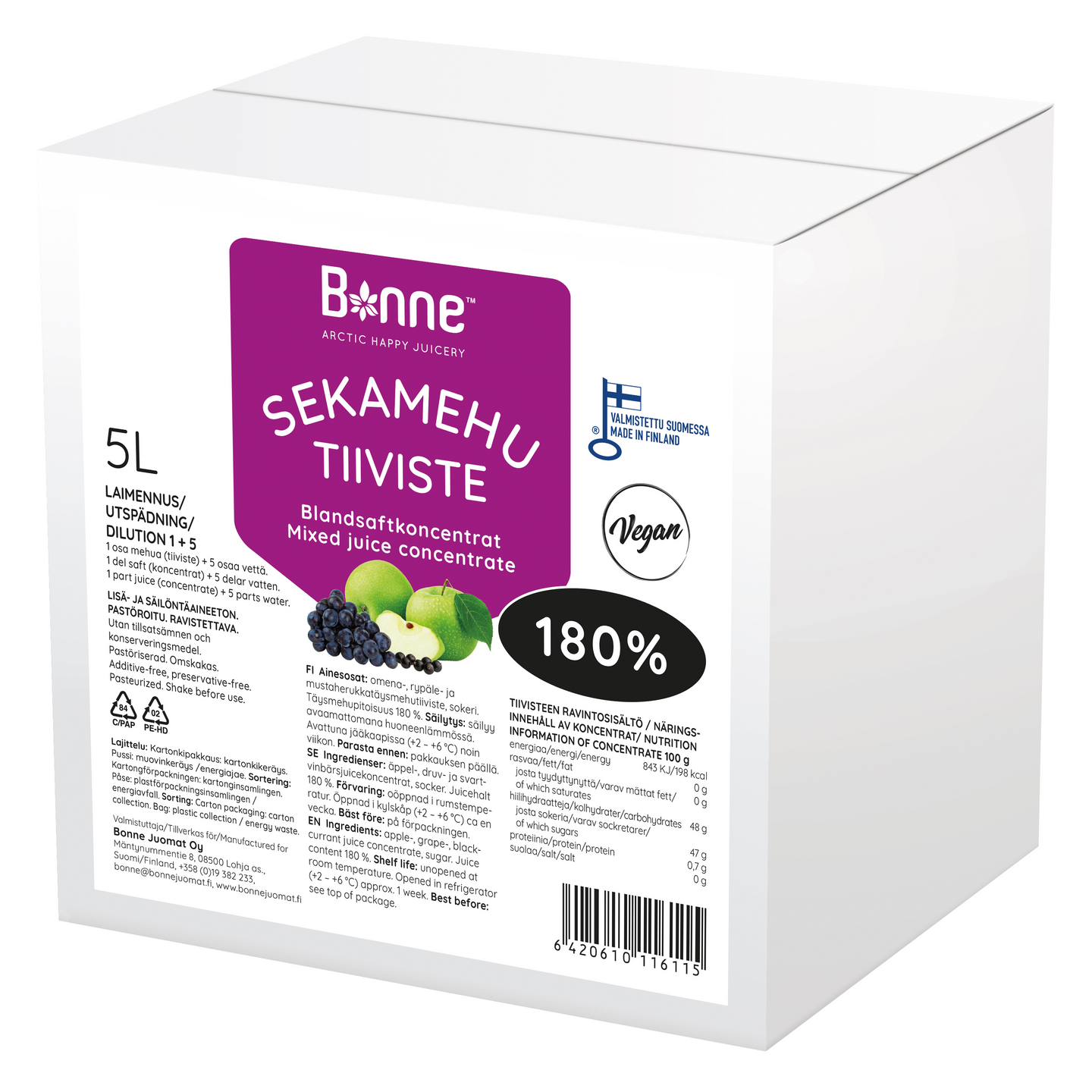 Omena-, rypäle-, mustaherukkatäysmehutiiviste, sokeri.