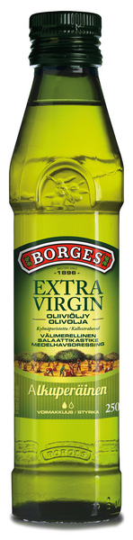 Kylmäpuristettu, laadukas espanjalainen extra virgin olive oil eli extra neitsytoliiviöljy. Sen maku vivahtaa manteliin ja tulee parhaiten esille kastikkeissa ja vaikka sellaisenaan salaatin kastikkeena tai leivän dippinä. Soveltuu myös ruoanlaittoon. Kätevä pieni pullokoko. Kaksoiskaatonokan avulla annostelet helposti haluamasi määrän öljyä -liraus tai loraus käytön mukaan. Tumma lasipullo suojaa auringon valolta.