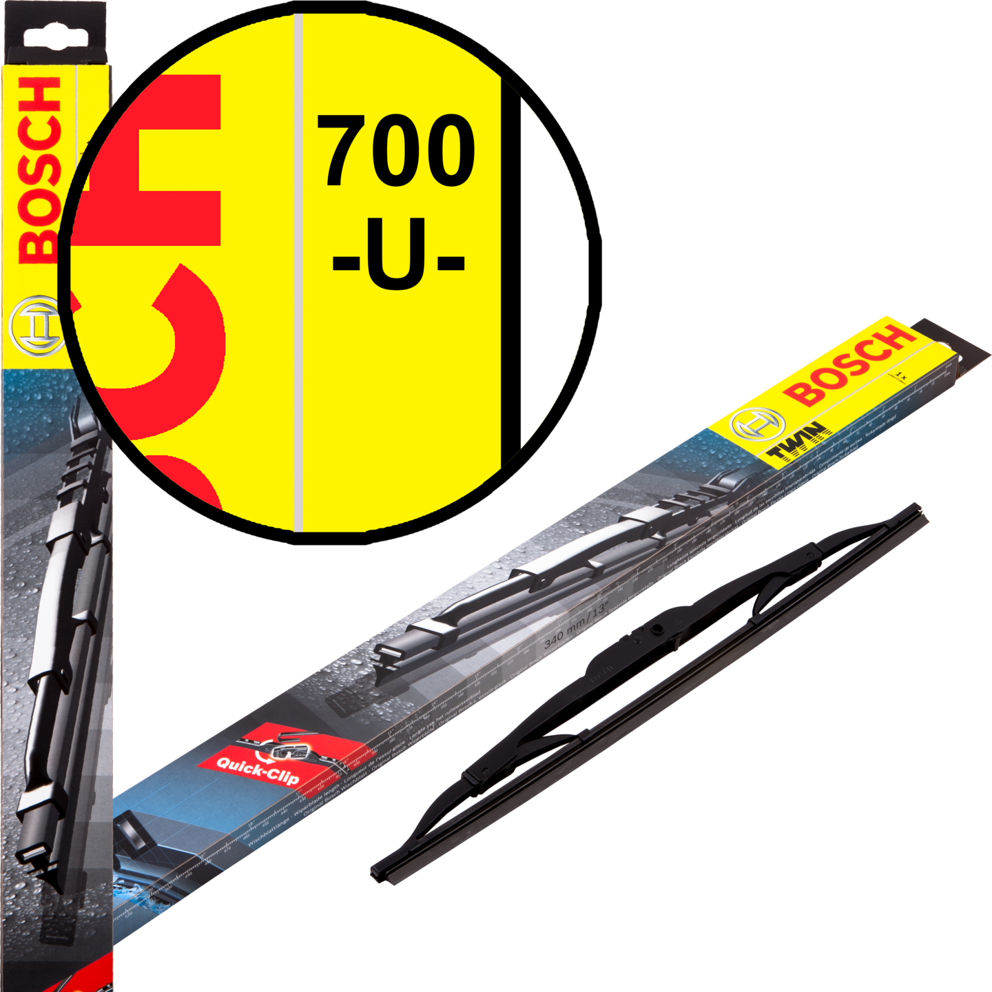 Boschin Twin- sulkia käytetään kaikissa käyttökohteissa, joihin liittyy erityisen vaativia käyttöoloja. Luja metallikiinnitysjärjestelmä on erittäin sitkeä ja kestävä kaksinkertaisen syöpymissuojauksen ansiosta. Yleismallisen Quick-Clip kiinnikkeen ansiosta pyyhkimien vaihto onnistuu parissa sekunnissa. Esiasennettu Quick-Clip -kiinnitys on luotettava ja sopii useimpiin automalleihin. Tuttu Twin-yhdistelmäkumi takaa optimaalisen pyyhintehon.