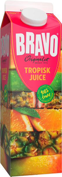 Nauti Bravo-trooppisesta mehusta joka sisältää ananasta, passionhedelmää, banaania, mangoa, papaijaa ja kiiviä. Bravo juuri sellaista kuin mehun kuuluukin olla, 100 % luonnollista, ilman lisättyä sokeria tai muita lisäaineita. Bravo on myös Ruotsin myydyin mehu merkki, koska se on maultaan hyvää.