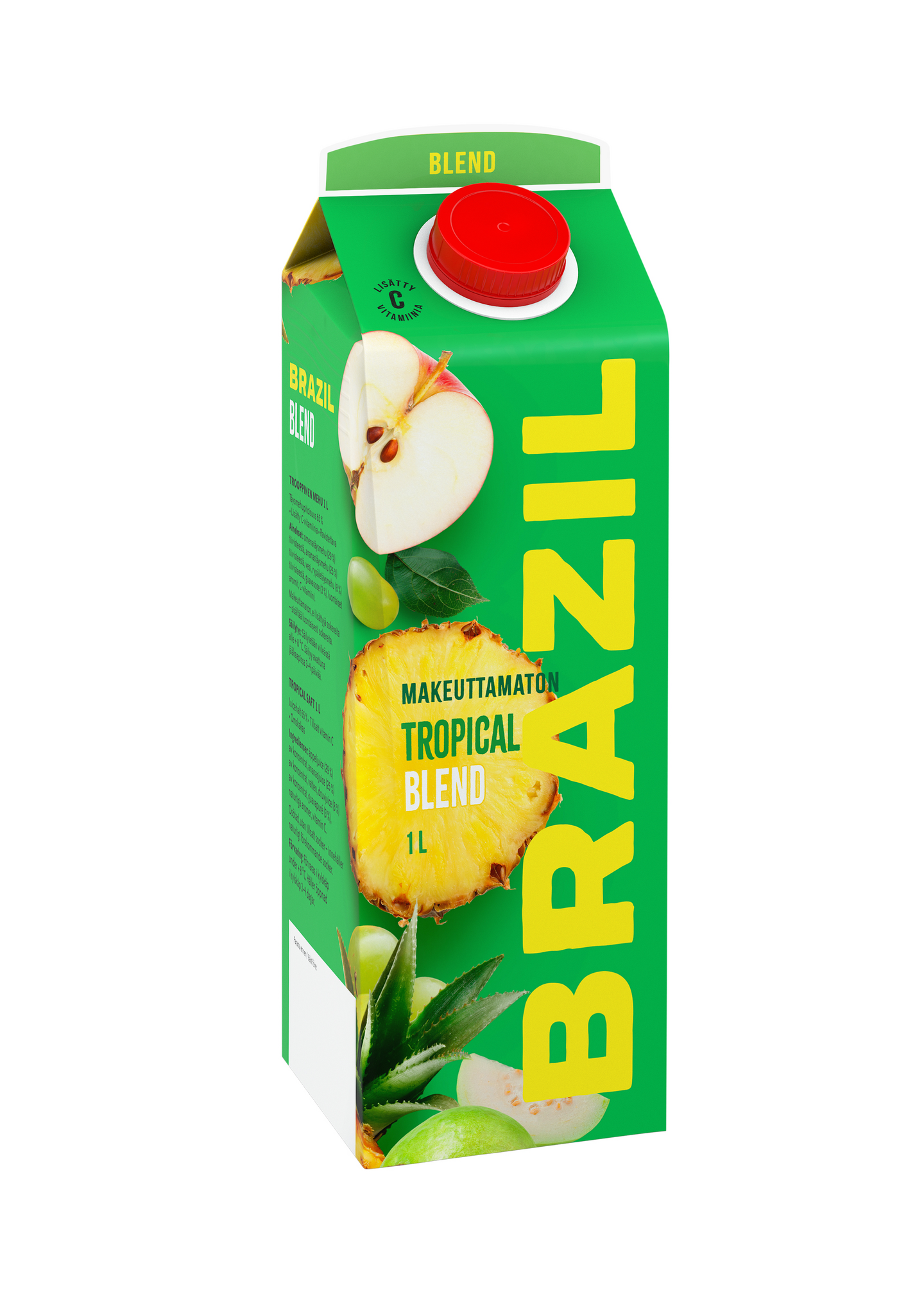 VegaaninenBrazil Blend on mieto ja makeuttamaton mehu, joka sopii koko perheelle. Tuotteessa on 65% mehupitoisuus.