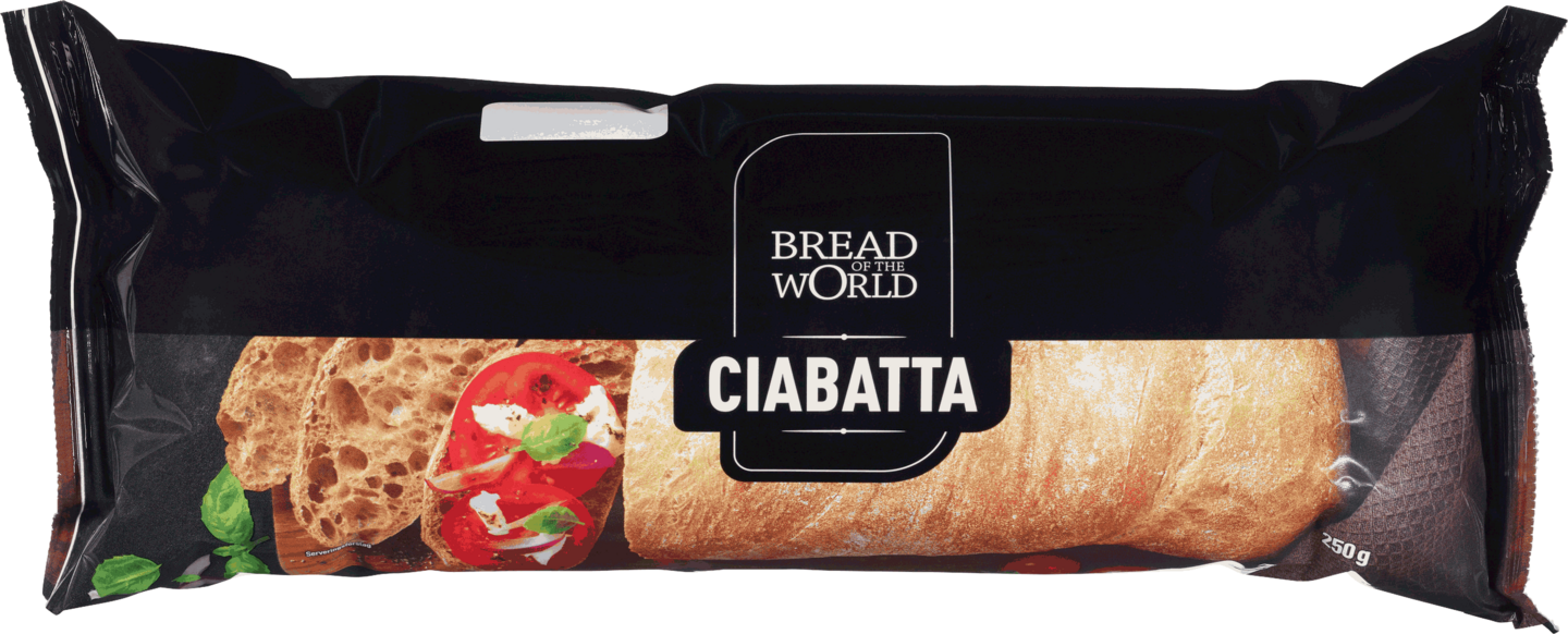 Herkullinen, kevyt ciabatta – päältä rapea ja sisältä pehmeä. Esipaistettu 250 g ciabattamme valmistuu minuuteissa ja sopii täydellisesti minkä tahansa aterian lisukkeeksi. Käytä voileipissä, keittojen ja salaattien lisukkeena tai bruschettan pohjana.