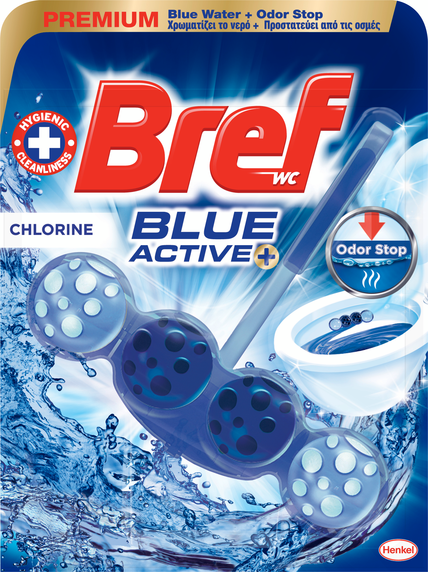 Bref Blue Active Chlorine on WC-raikastin, jossa on sinisen huuhtelun lisäksi hurmaava kukkaistuoksu. 50% enemmän kiiltoa puhdistavan polymeerin ansiosta sekä hajua estävä teknologia. WC-raikastin jättää WC altaan erittäin puhtaaksi ja raikkaaksi pitkäksi aikaa.