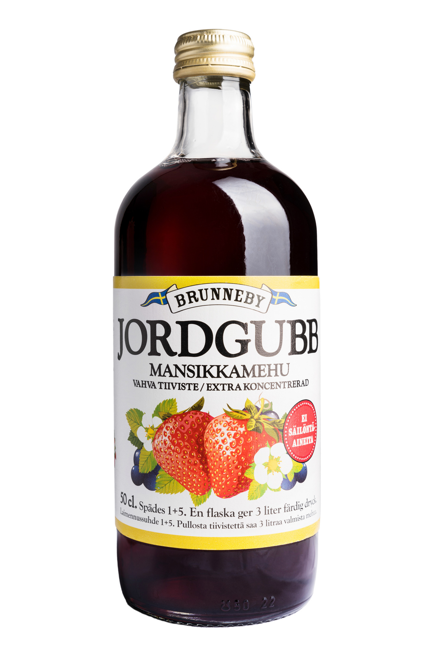 Brunnebyn mansikkamehu on väriltään kirkkaanpunainen ja maistuu aurinkoiselta kesäpäivältä! Valmistamme mehun auringon kypsyttämistä mansikoista ja makeutamme sen viinirypäleillä ja sokerilla. Mehussa on juuri sopiva määrä makeutta ja pieni, tasapainoinen happamuus.