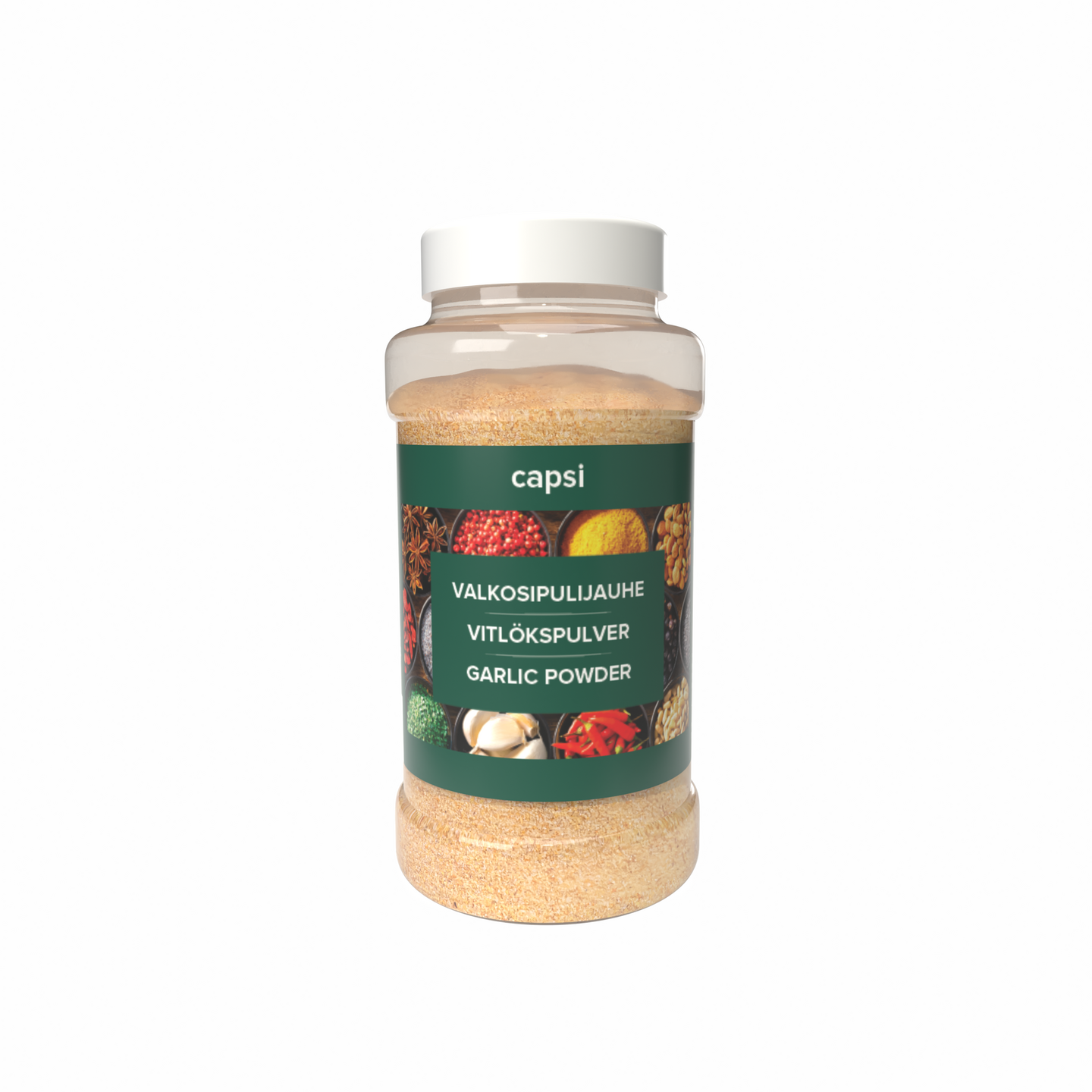 Capsi valkosipulijauhetta voit käyttää tuoreen valkosipulin tavoin liha-, kasvis-, ja kalaruokien maustamiseen. Valkosipulijauhe sopii erinomaisesti myös kastikkeiden, marinadien ja maustevoin maustamiseen.