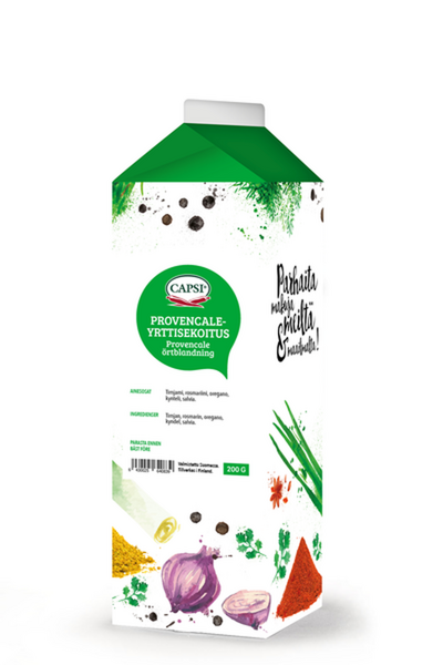 Capsi Provencale yrttiseos on ranskalaisen keittiön perinteinen yrttiseos, jonka hieno maku sopii liha- ja kasvisruokien, kastikkeiden ja marinadien maustamiseen.