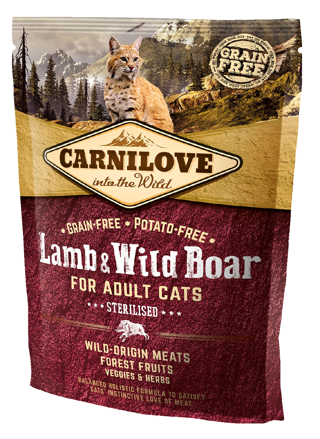 Carnilove Lammas ja villisika on aikuisille kissoille kehitetty kuivaruoka, kunnioittaen kissojen luonnollista ruokavaliota. Erityisesti steriloiduille kissoille suunniteltu lammasta ja villisikaa, luonnollisia ja kokonaisvaltaista hyvinvointia tukevia ainesosia sisältävä kuivaruoka.