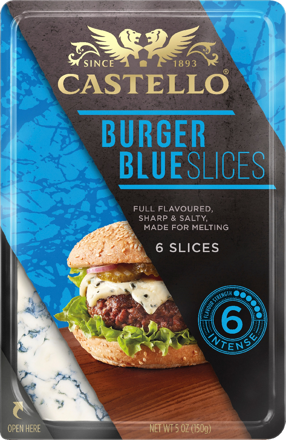 LaktoositonKermainen, hienostunut ja voimakas sinihomejuusto hampurilaisen väliin. Kätevien välipaperien ansiosta helppokäyttöinen juustoviipale. Laktoositon.