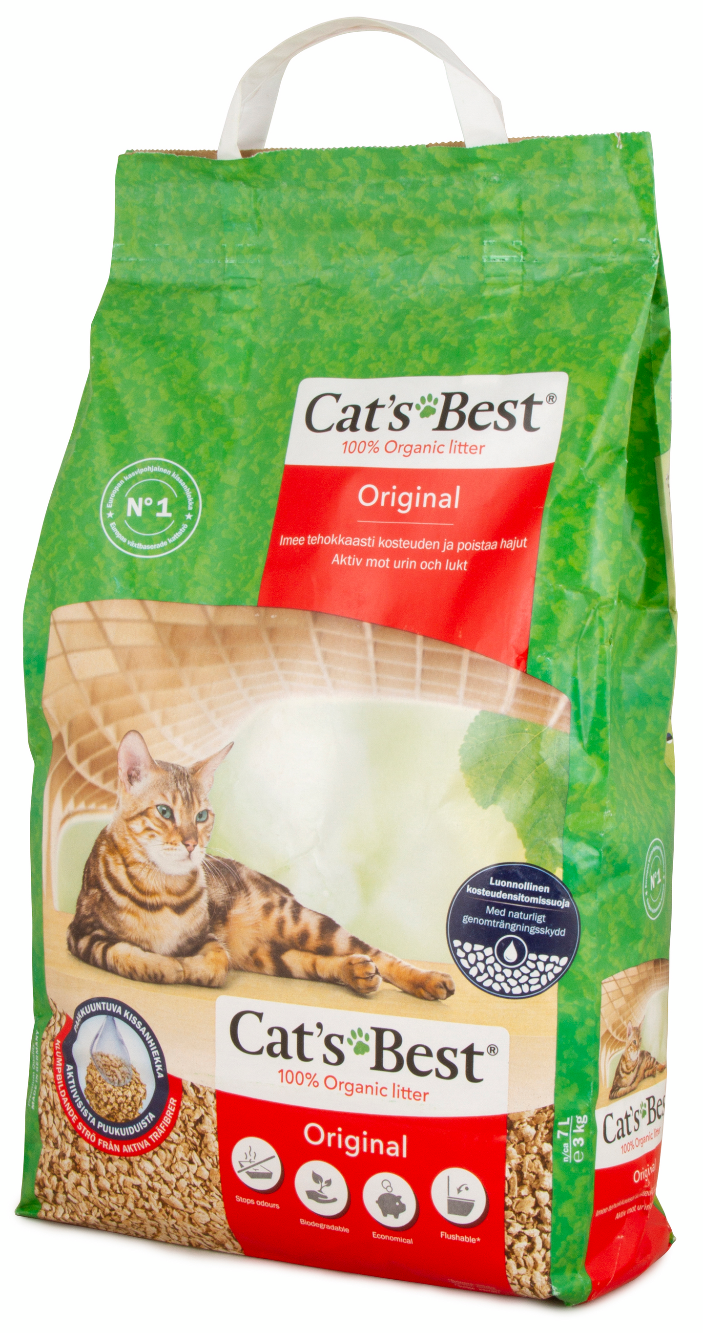Cat’s Best® Original koostuu teknologisesti jalostetuista puukuiduista. Uuden ICS* WOOD FIBRE TECHNOLOGY -tekniikan avulla valmistetut aktiiviset puukuidut sitovat kosteuden ja hajuhaitat erittäin nopeasti ja pysyvästi – täysin luonnollisesti. Tämä pitää kissan hiekkalaatikon miellyttävän puhtaana pitkään, ilman koko laatikon sisällön vaihtamista. Cat’s Best® Original on kevyempää ja imuteholtaan kolme kertaa tehokkaampaa kuin tavallinen