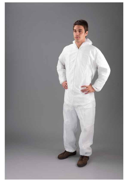 Suojahaalari hupulla. Haalari joustaa vyötäröltä, ranteista, nilkoista ja hupusta. Kiinnitys: vetoketju. Haalari suojaa lialta ja vaarallisilta roiskeilta. Käyttökohteita mm. teollisuus, rakentaminen ja palvelut, ruoanvalmistus, terveydenhuolto, varastointi, kuljetus ja logistiikka, jätehuolto. CE-merkki (PPE CAT I minimal risk). Elintarvikehyväksytty. Materiaali: kuitukangas, polypropeeni, 38gsm. Koko:XXL. Pakkauskoko: 1 kpl/pkt, 50 kpl/ltk
