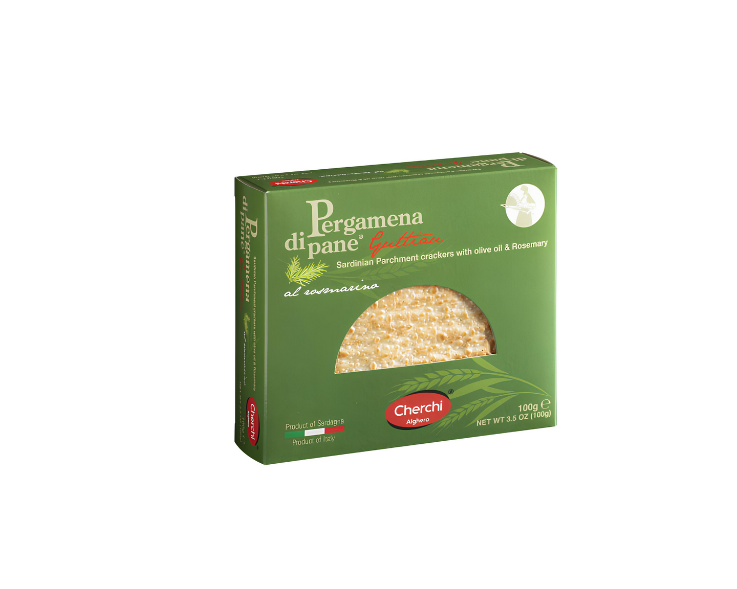Panificio Cherchi tarjoaa Pergamenaansa jokaisen maun tyydyttämiseksi eri makuina: klassinen, guttiau (maustettu oliiviöljyllä ja suolalla), guttiau oreganolla ja guttiau rosmariinilla.