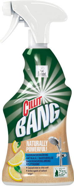 Tehokas luonnollisella tavalla! Tehokkaassa kylpyhuoneen puhdistamiseen tarkoitetussa tuotteessamme yhdistyvät Cillit Bangin tuttu tehokkuus, 100-prosenttisesti luonnollista alkuperää* olevat ainesosat sekä erinomaiset lopputulokset. Sisältää sitruunahappoa, joka on tunnettu tehokkaista puhdistusominaisuuksistaan; poistaa pinnoilta tehokkaasti kalkin, saippuajäämät, ruosteen ja lian. Pullo on valmistettu 75-prosenttisesti kierrätetystä muovista, ja sekä puhdistusaine että pakkaus ovat saaneet EU:n ympäristömerkin. Vastuullisempaan siivoamiseen!** Siivoa ympäristöystävällisesti ja tehokkaasti, älä tee kompromisseja!
