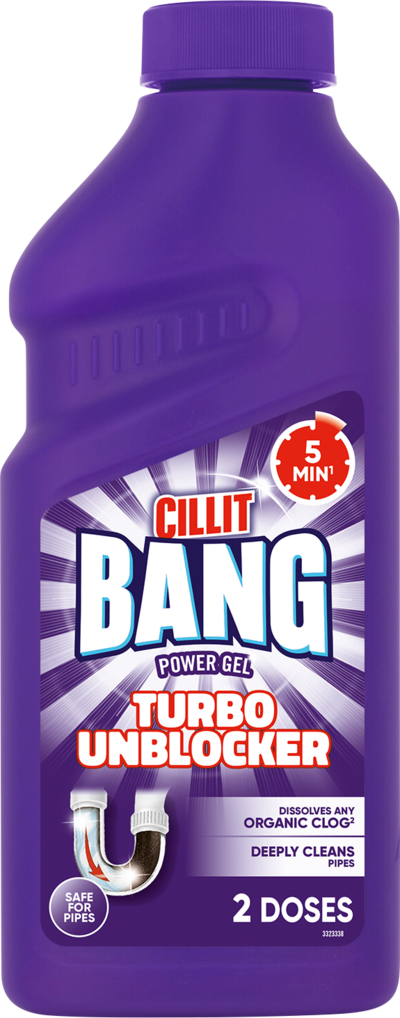 "Erittäin tehokas Power Gel on ihanteellinen orgaanisten tukosten2 poistamiseen ja putkien syväpuhdistamiseen, jotta hajujen päälähde saadaan poistettua. Paksun geelinsä ansiosta Cillit Bang Turbo Unblocker tehoaa viidessä minuutissa. Se liuottaa kylpyhuoneen orgaaniset tukokset1 ja on samalla turvallinen viemäreille! 1) Tehoaa viidessä minuutissa kylpyhuoneen orgaanisiin tukoksiin (hiukset, saippua jne.).