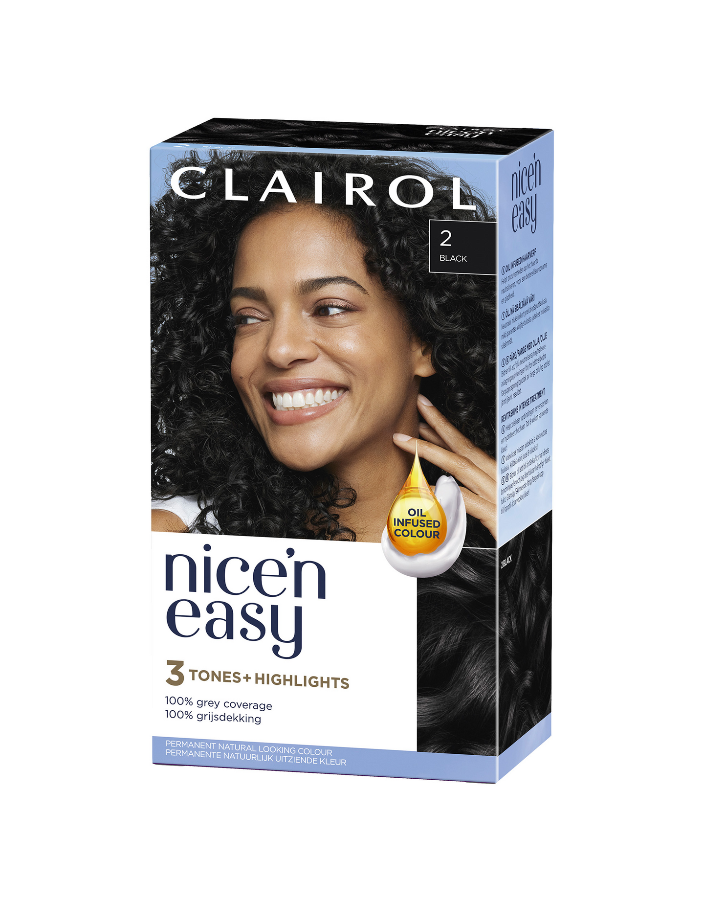 Clairol Nice'n Easy on luonnollisen näköinen hiusväri, joka sisältää sekoituksen kolmea sävyä korostaen hiusvärin eri vivahteita. Sen öljyä sisältävä koostumus ja Revitashine-teknologia jättävät hiukset sileiksi ja vahvoiksi.