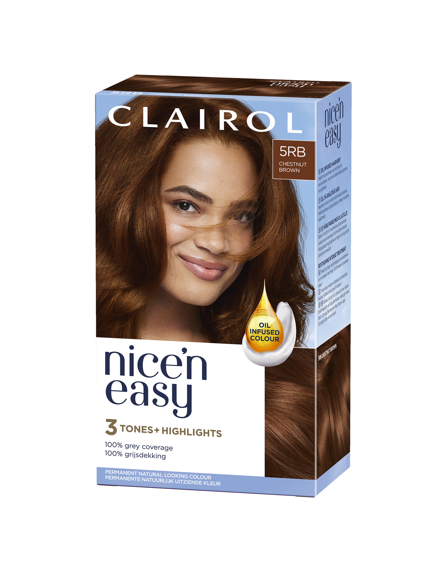 Clairol Nice'n Easy on luonnollisen näköinen hiusväri, joka sisältää sekoituksen kolmea sävyä korostaen hiusvärin eri vivahteita. Sen öljyä sisältävä koostumus ja Revitashine-teknologia jättävät hiukset sileiksi ja vahvoiksi.
