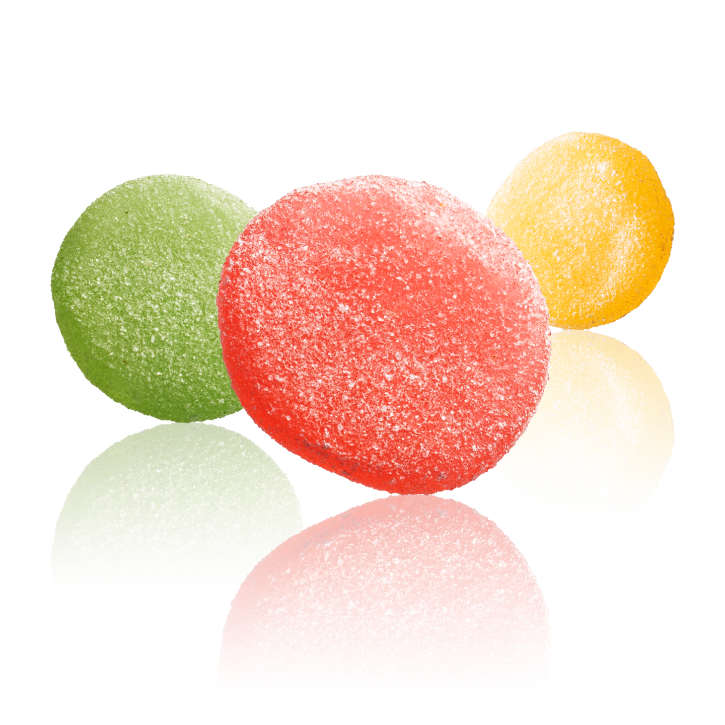 sokeria, glukoosisiirappia, tärkkelystä, happoa (sitruunahappoa), aromeja, värejä (E120, E141, E160a).