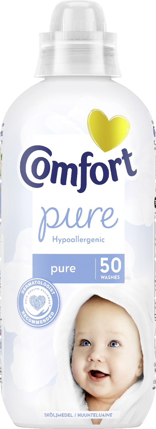 Comfort Pure -huuhteluaine sopii sinulle, jolla on herkkä iho ja arvostat pyykkisi silkkistä pehmeyttä. Comfort Pure -huuhteluaine on hypoallergeeninen ja dermatologisesti testattu: se sopii herkälle iholle. Huuhteluaine tuoksuu miedosti, joten se on mainio valinta myös sinulle, joka vältät liian vahvasti tuoksuvia pesutuotteita. Comfort Pure sopii myös lastenvaatteille ja muille lasten tekstiileille.