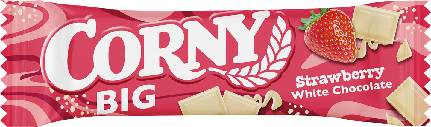 Corny BIG – Suomen ostetuin välipalapatukka! Herkullinen ja täyteläinen välipalapatukka, jossa yhdistyy mansikoiden ja valkosuklaan maku. Mahtavan makuinen myslipatukka sisältää rapeita hiutaleita, pieniä mansikan palasia ja patukan pohjalla on kerros valkosuklaata. Patukka on helppo ottaa mukaan välipalaksi ja nauttia silloin kun tarvitset ylimääräistä energiaa.
