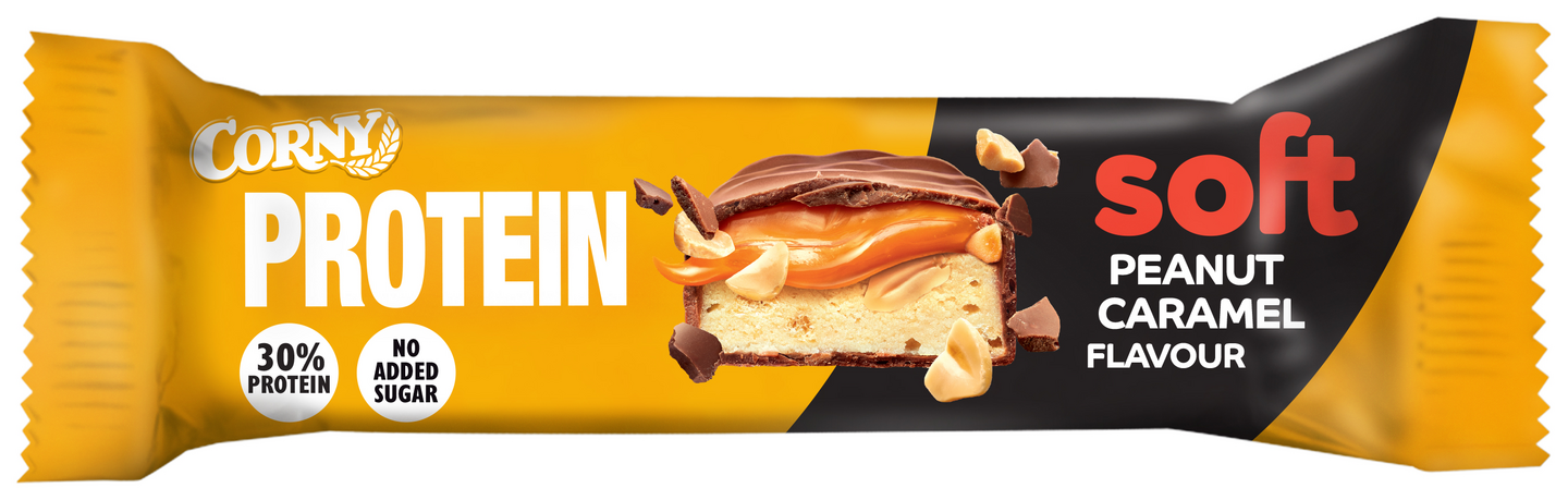 Corny Soft Protein Peanut Caramel on herkullinen ja pehmeä proteiinipatukka ilman lisättyä sokeria. Patukassa on rapeita maapähkinöitä ja karamelli- ja proteiinitäytettä ja se on kuorrutettu maitosuklaalla. Corny Soft proteiinipatukka on täydellinen välipala, kun tarvitset hieman ylimääräistä proteiinia. Jokainen patukka sisältää 30% proteiinia (13,5g).