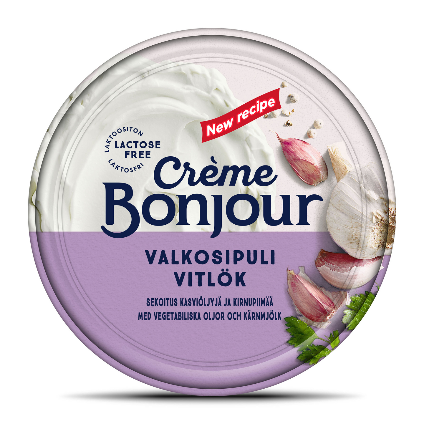 LaktoositonAito ja perinteinen Crème Bonjour Valkosipuli-levite on oivallinen apu ruoanlaitossa: kermainen rakenne notkistuu ja sekoittuu helposti uuniruokaan tai kastikkeeseen. Testaa kuinka Crème Bonjourin hurmaava maku sävyttää alkupalat tai suolaiset leivonnaiset! Valkosipuli-levite on saatavilla 100 gramman ja 200 gramman pakkauksissa.
